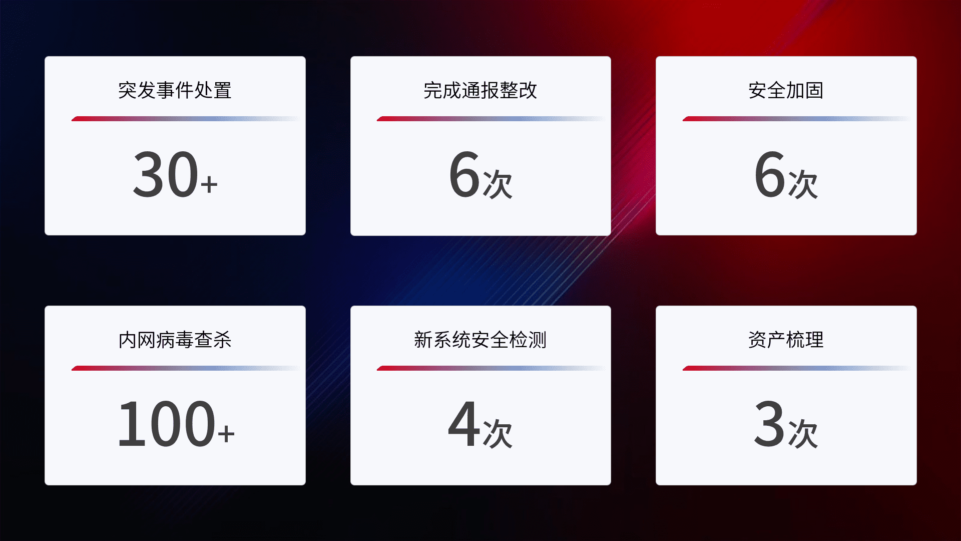 网络安全加固与风险管理:通过技术加固手段,,如加强区域隔离,,,,缩减攻击内网横向移动的范围;优化现有网络安全管理制度,,,降低网络威胁暴露面,,,,减少被黑客攻击的可能性。。